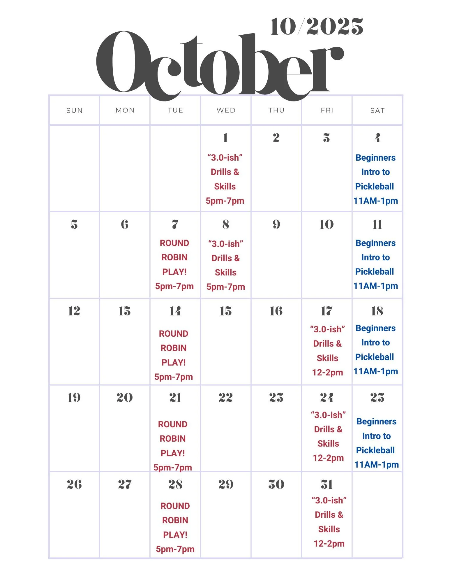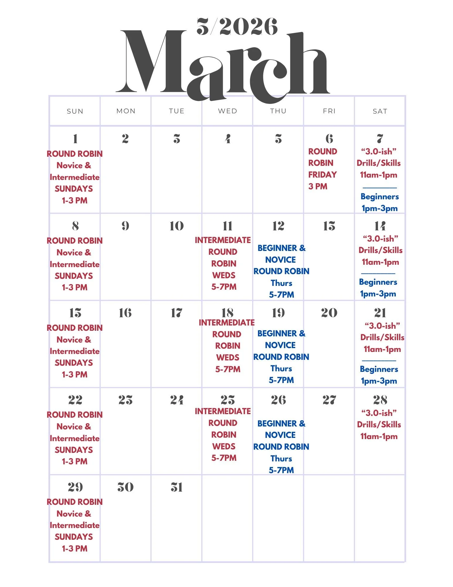If you want to sign up for any of these classes, head over to the Sign Ups Page to get Pre-Registered.